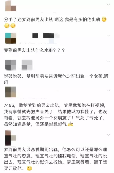 有意思的是,我写这篇文章之前,特地上微博上搜了搜,有多少姐妹和我有相似的经历,没想到输入「梦见男友出轨」之后,竟然搜出了一堆梦见前男友出轨的。