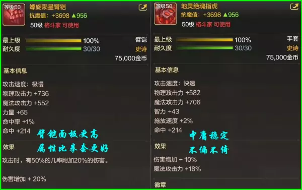 50%几率附加20%伤害,伤害附加20%,标准一流的武器装备,散打带上这件臂铠,一脚就能踹飞哥布林。