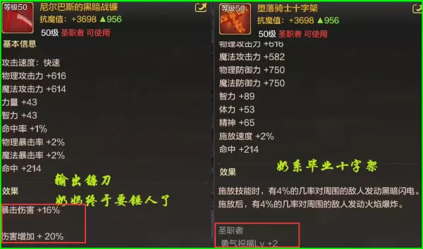 而另外,还有少部分的奶妈玩家热衷于PK,这时候就可以选择一把镰刀作为输出武器了,暴击伤害+16%,伤害增加+20%,这样的属性堪称一绝。
